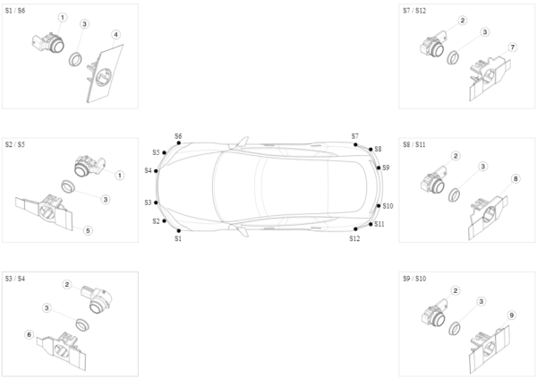 Tesla Model S(2012-2021), X(2015-2021) Parking Assist Sensor Radial S3/S4/S7-S12 BOSCH Autopilot-AP1 (Solid White – PBCW) OEM 1048474-03-A