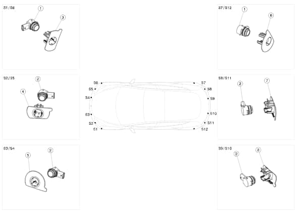 Категории: 17 - Электрика, 1727 - Парковочный ассистент, 1727-2 Датчики парковочного ассистента