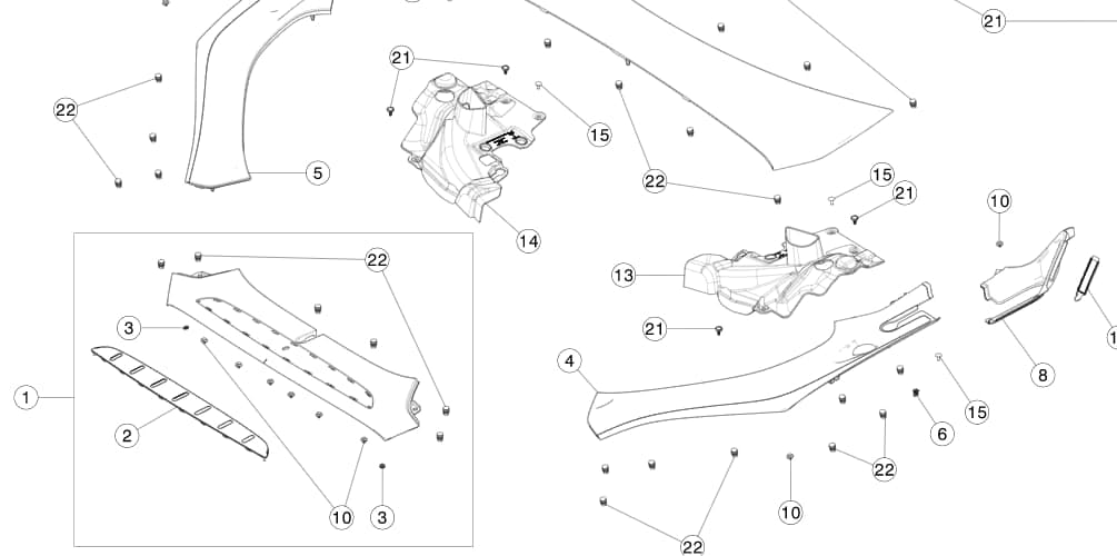 Категории: 12 - Элементы наружной отделки кузова, 1225 - Элементы облицовки подкапотного пространства